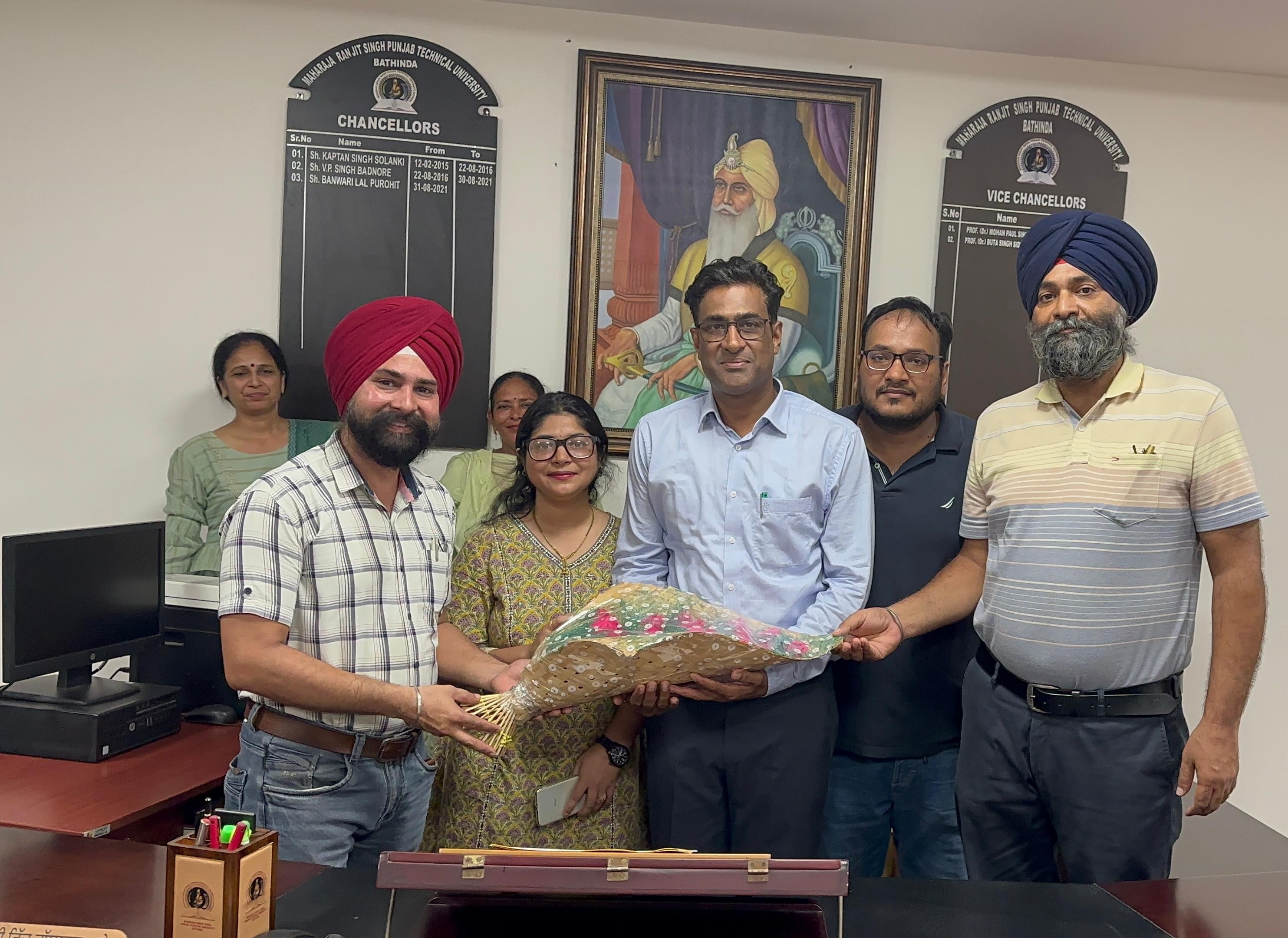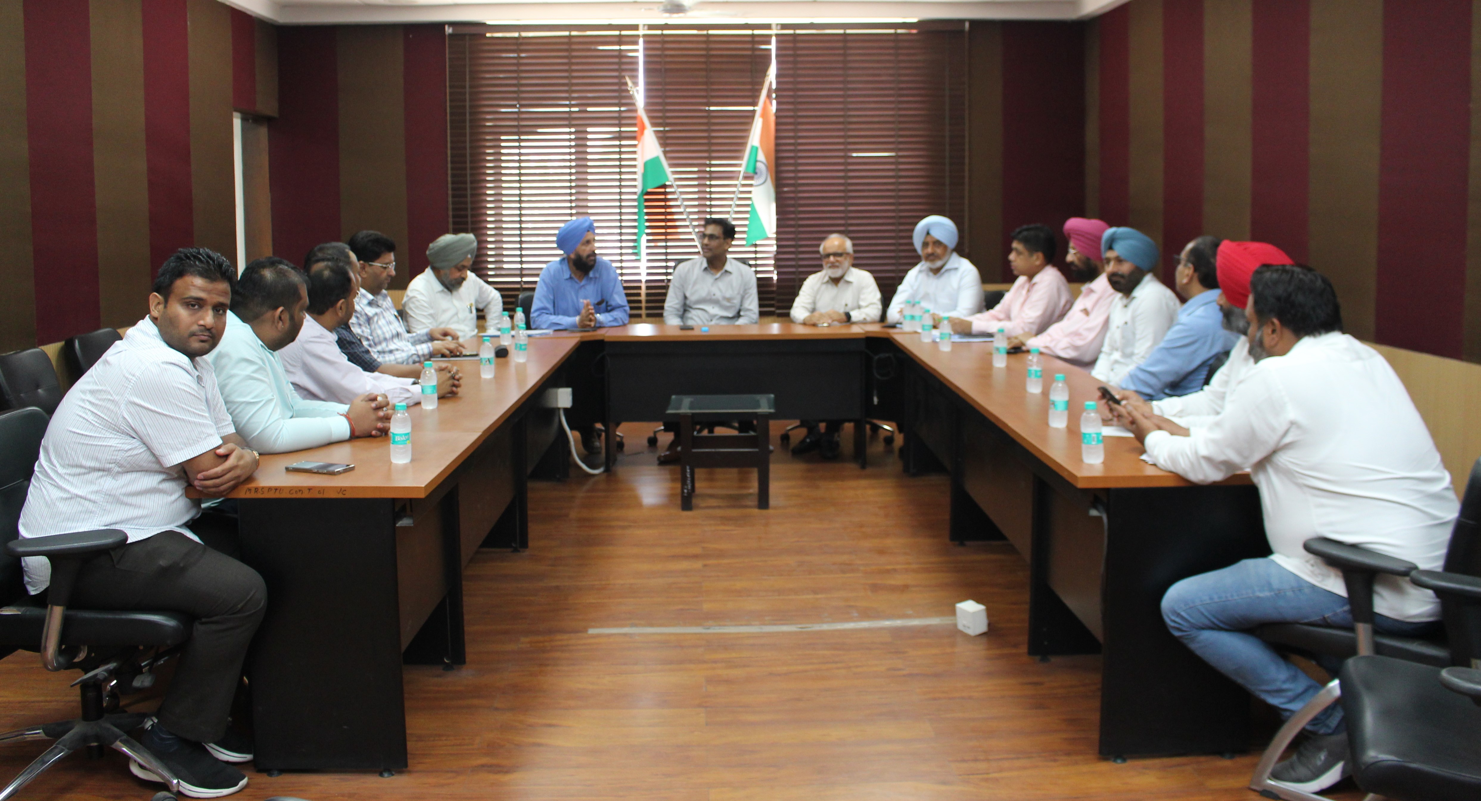 Event Description: MRSPTU VC Calls for Stronger Collaboration with Affiliated Colleges to Elevate Educational Quality and University Standards… Bathinda, July 29 The newly appointed Vice Chancellor of Maharaja Ranjit Singh Punjab Technical University (MRSPTU), Prof. Sandeep Kansal, has called for increased cooperation between the university and its affiliated colleges to improve educational standards. During a meeting at VC office on Monday , Prof. Kansal underscored the importance of a unified effort to advance technical education, promote cutting-edge research, and modernize the curriculum in line with contemporary needs. He also emphasized the effective implementation of the New Education Policy-2020. Attended by key university officials and representatives from affiliated colleges, the meeting highlighted the positive trend of increased admissions and the reversal of the trend of students studying abroad. Participants expressed satisfaction with this development, viewing it as a promising sign for technical institutes. The discussions also covered enhancing the admission process, promoting sports and cultural activities, and supporting the university’s growth. The university remains committed to addressing challenges and supporting its affiliated colleges to further enhance educational quality. University, Registrar Dr. Gurinder Pal Singh Brar, Controller of Examination Dr. Neeraj Gill, Director College Development Council Dr. Balwinder Singh Sidhu, Professor Inchart (Finance and Purchase) Dr. Harish Garg and Director of Public Relations Harjinder Singh Sidhu attended the meeting. Key participants from Colleges /Institutes included Baba Farid Group of Institutes, Bathinda Chairman Sardar Gurmeet Singh Dhaliwal, Desh Bhagat Group of Institutes: Chairman, Shri Devinder Singh, Aklia Educational & Research Society Group of Institutions, Aklia Kalan Chairman, Gurtej Singh Brar, Arya Bhatta Group of Institutes, General Secretary Sh. Vicky Singhal, Asra College of Engineering and Technology: Chairman Dr. R.K. Goyal, KCT College of Engineering & Technology, Sangrur: Chairman Sh. Monty Garg, SFC Institute, Moga, CMD Abhishek Jindal, Lala Lajpat Rai College, Principal-Director Dr. Naveet Nagpal, LLRIET, Principal Dr. AP Mehta and Sh. Janesh Garg, ISF College of Pharmacy. Photo Caption : MRSPTU VC Prof. Sandeep Kansal, Registrar Dr. Gurinder Pal Singh Brar, and other university officials with chairmen, directors, and representatives from various affiliated colleges during a meeting at the VC office on Monday. |