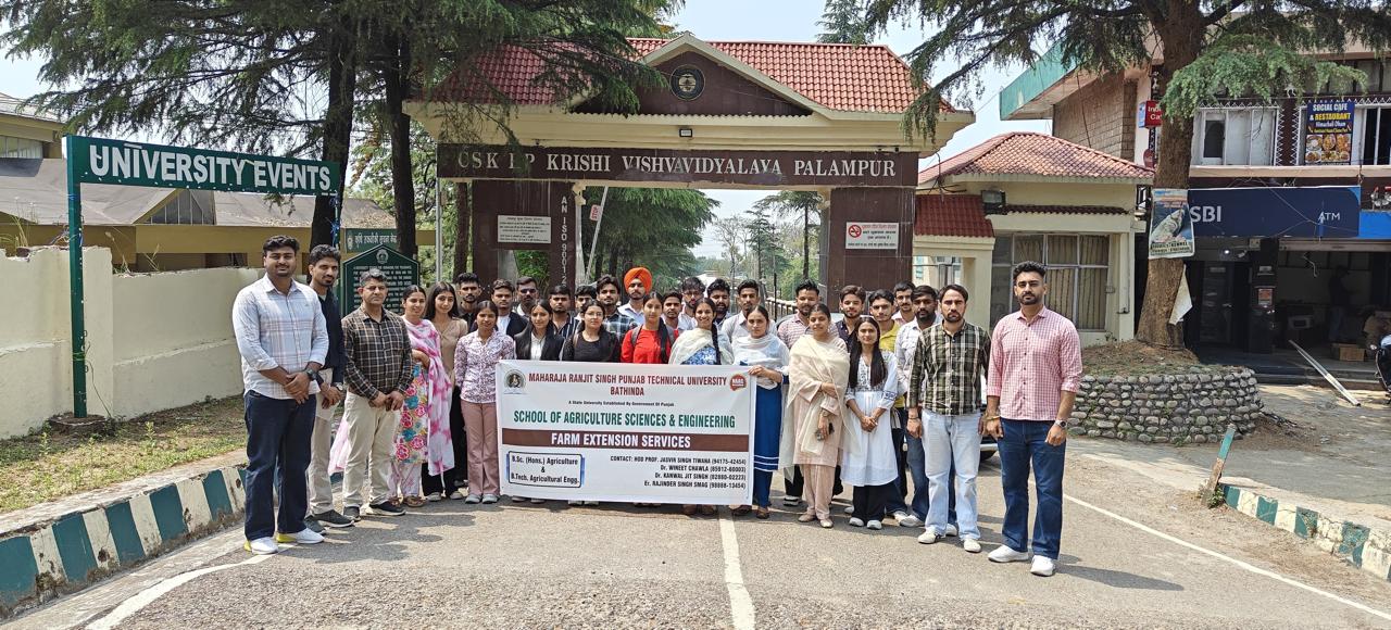 Event Description: Educational Trip to CSK University, Palampur by School of Agricultural Sciences and Engineering, MRSPTU…… Bathinda, April 24 Students and faculty of the School of Agricultural Sciences and Engineering, Maharaja Ranjit Singh Punjab Technical University (MRSPTU), Bathinda, recently visited Chaudhary Sarwan Kumar Himachal Pradesh Krishi Vishvavidyalaya (CSK HPKV), Palampur, for an educational tour aimed at enhancing their understanding of hill agriculture, innovative techniques, and research advancements. The team was led by faculty members Dr. Wineet Chawla, Dr. Harpreet Sekhon, Mr. Raghuvir Singh, and Ms. Simranpreet Kaur. The visit bridged theoretical learning with practical exposure to the agro-climatic diversity of Himachal Pradesh. A highlight of the trip was the visit to Palampur’s renowned tea gardens, nestled in the Dhauladhar range. Dr. Sanjay, Incharge of the Tea Garden, guided students through various stages of tea cultivation and processing. At the tea factory, students witnessed the complete manufacturing process—from withering to drying—gaining insights into the economic and cultural importance of tea. The students also explored the university’s Agricultural and Biodiversity Museum, featuring exhibits on traditional tools, rare seeds, and indigenous farming methods. The museum emphasized the ongoing relevance of traditional knowledge in sustainable agriculture. The floriculture gardens showcased ornamental plants such as gerberas, gladiolus, chrysanthemums, and roses. Dr. Des Raj, Professor, Department of Vegetable Science and Floriculture, explained propagation techniques, greenhouse and polyhouse cultivation, and marketing strategies—sparking student interest in floriculture careers. Another enriching experience was the visit to the university’s advanced microbiology and biotechnology labs. Under Dr. Abhishek Walia, Assistant Professor of Microbiology, students engaged in hands-on sessions involving biofertilizers, pathogen identification, slide preparation, and demonstrations of DNA extraction and gel electrophoresis. These sessions introduced them to molecular tools in modern plant breeding, including marker-assisted selection. Prof. Jasvir Singh Tiwana, Head of Department, thanked Hon’ble Registrar Dr. Gurinderpal Singh Brar for his support in facilitating the trip. He emphasized the value of such tours in enhancing students' academic and practical knowledge, and reaffirmed the department’s commitment to organizing more experiential learning visits. This educational visit to CSK HPKV, Palampur, significantly enriched students’ understanding of integrated and sustainable agricultural practices in diverse terrains. Photo Caption: Different pictures from the visit. |