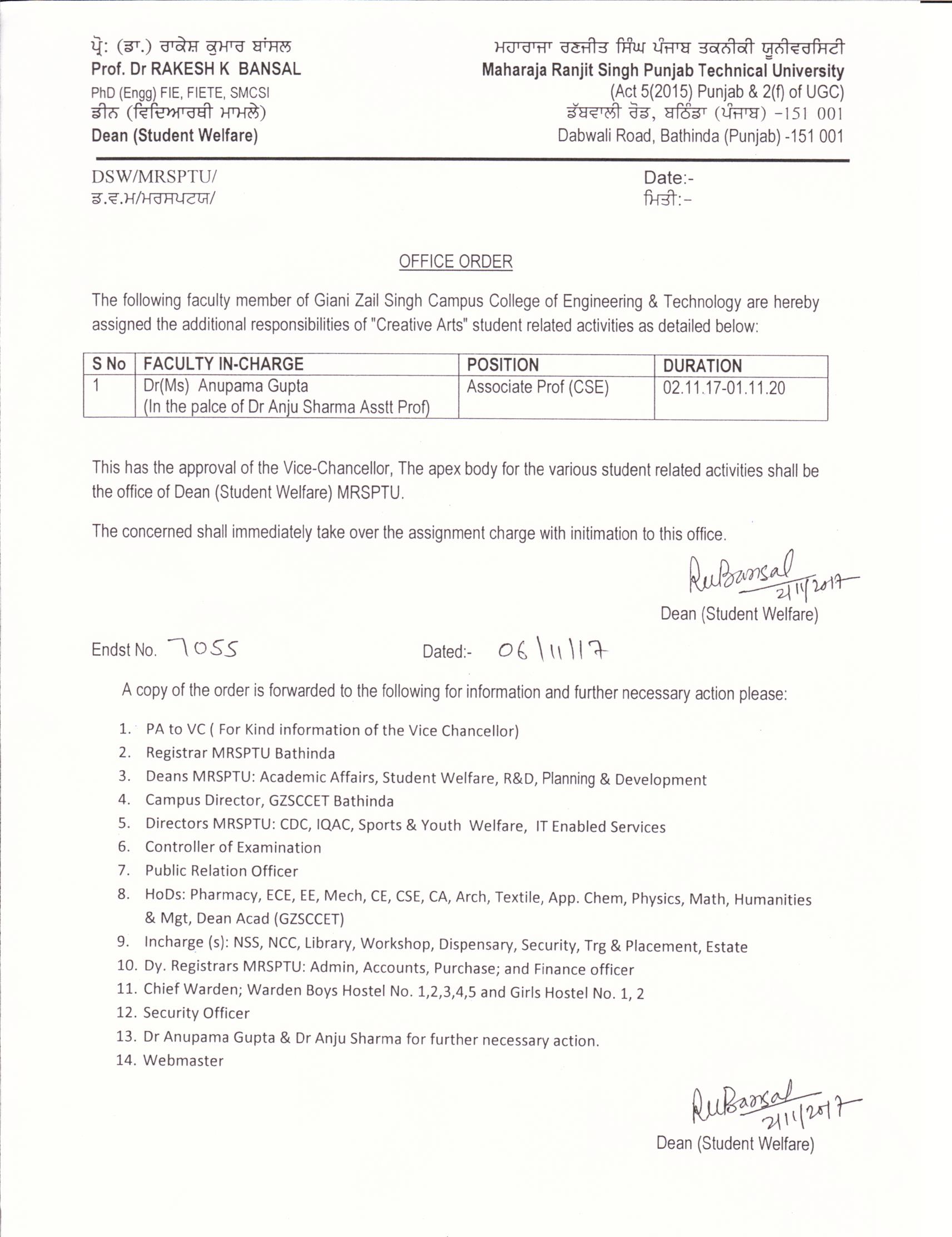 | Corrigendum regarding the Advt no. MRSPTU/ESTB./2018/170 |