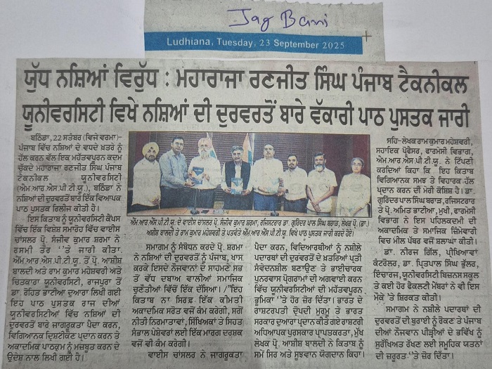 Campaign Against Drugs: Prestigious Textbook on Drug Abuse released at MRSPTU….. |